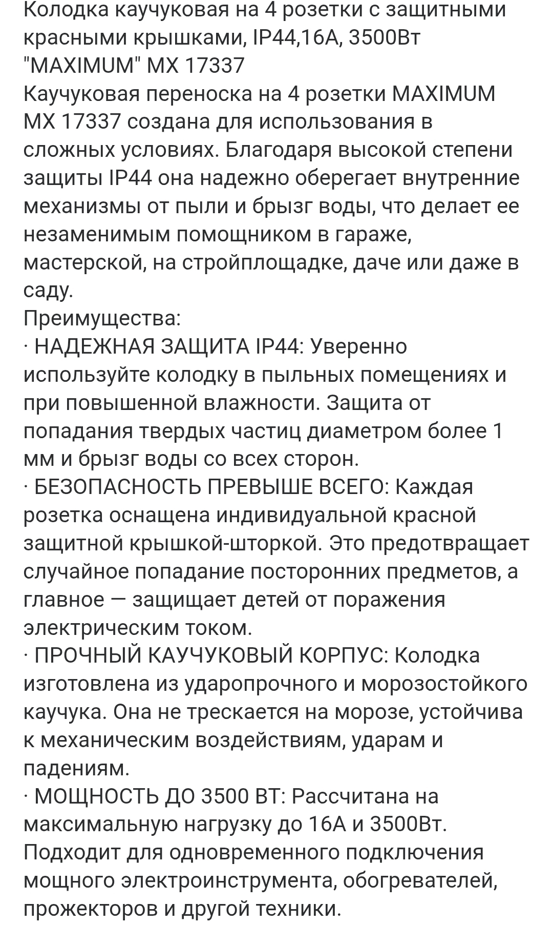 · НАДЕЖНАЯ ЗАЩИТА IP44: Уверенно используйте колодку в пыльных помещениях и при повышенной влажности. Защита от попадания твердых частиц диаметром более 1 мм и брызг воды со всех сторон.
